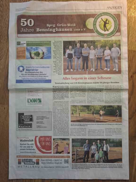 Am 26.04.2025 feierte die Tennisabteilung des SV Grün-Weiß Benninghausen bei besten Wetter ihr 50-jähriges Jubiläum.